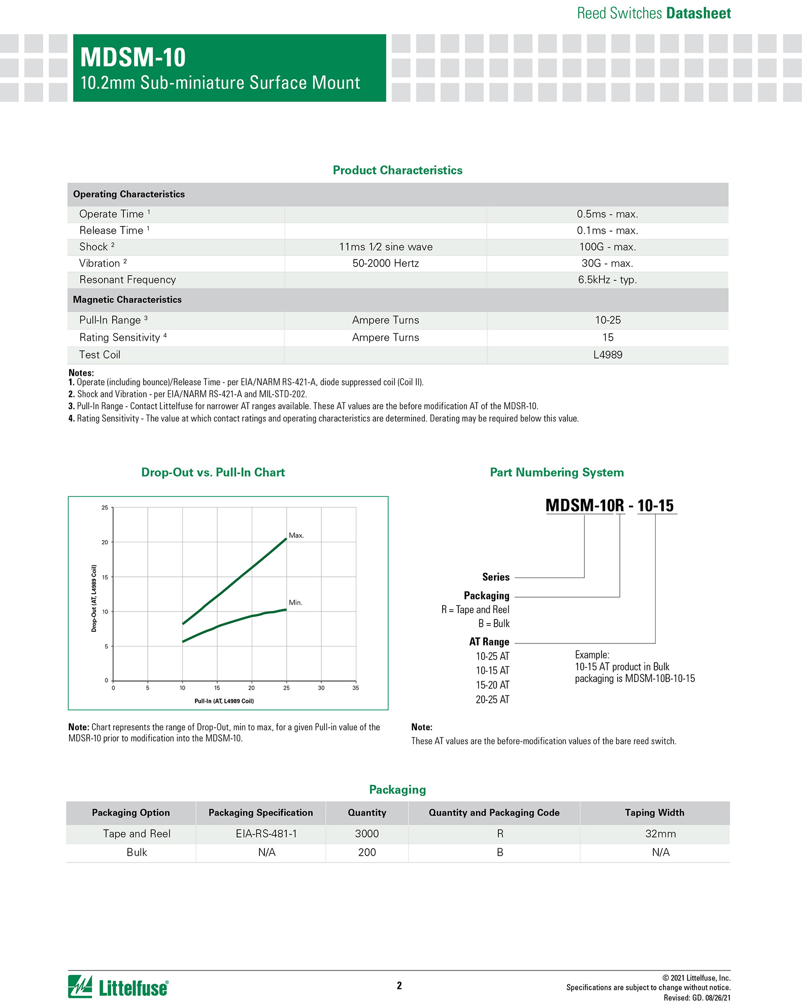 Function and Features: Ultra small normally open switch, with maximum switching voltage and current of 200Vdc and 0.5A respectively (maximum power of 10W). The available sensitivity range is 10-25 AT with a high insulation resistance of at least 10 ¹⁰ ohms and a contact resistance of less than 120 milliohms.
