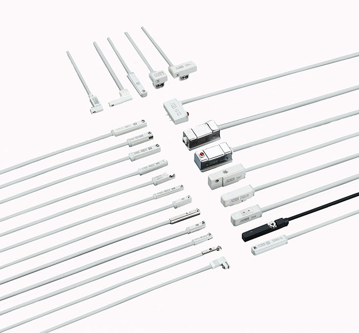 目前的AIGES(雅吉仕)磁感应开关系列繁多,种类齐全,每个系列包含:有接点干簧管型、无接点2线电子式、3线电子式无接点NPN及PNP型开关系列。并且开发了相应的各种规格配套夹具及M8快速接头。