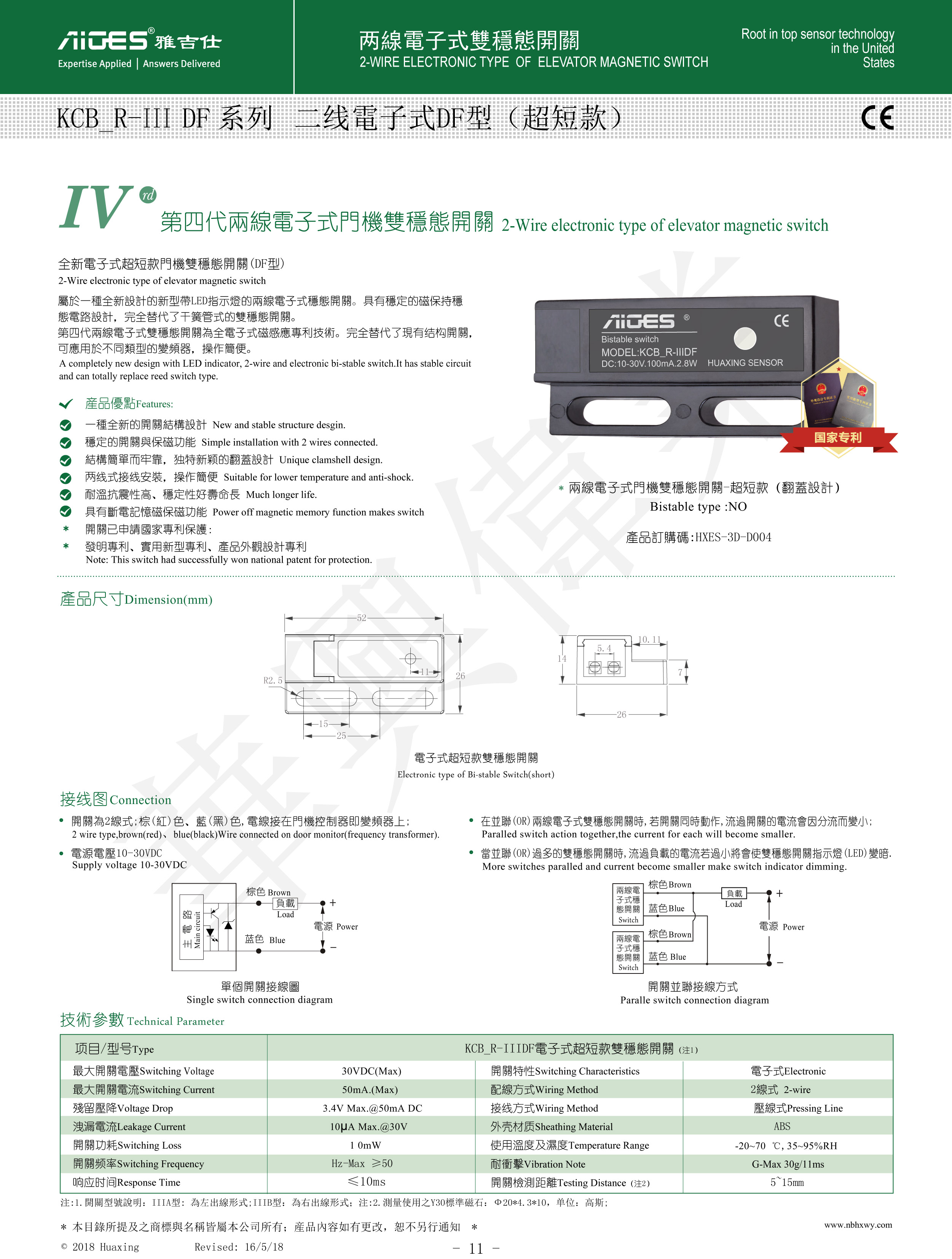 开关具有稳定的磁保持稳态电路设计,完全替代了干簧管式的双稳态开关;