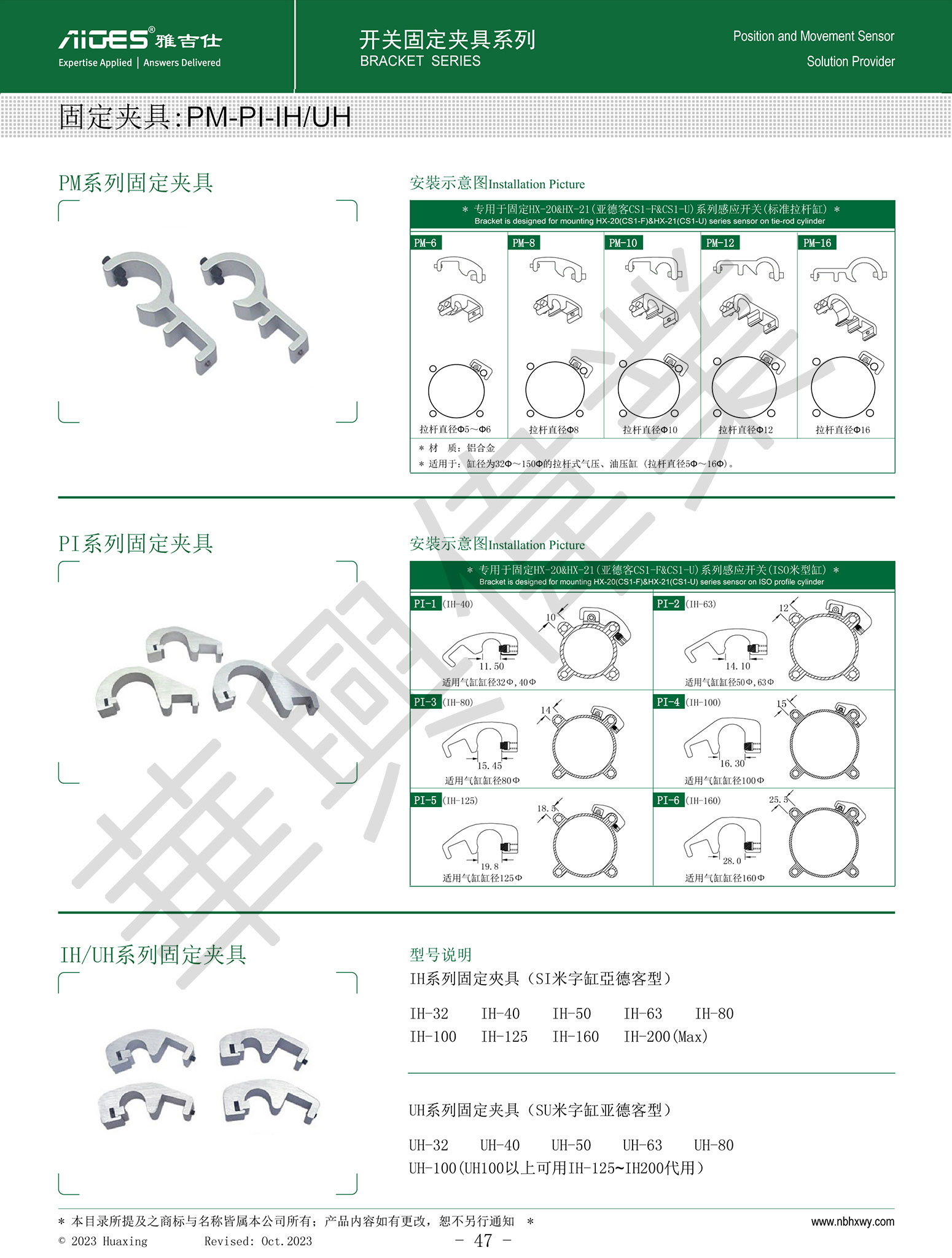 应用:专用于固定HX-20&HX-21(亚德客CS1-F&CS1-U)系列感应开关(标准拉杆缸).