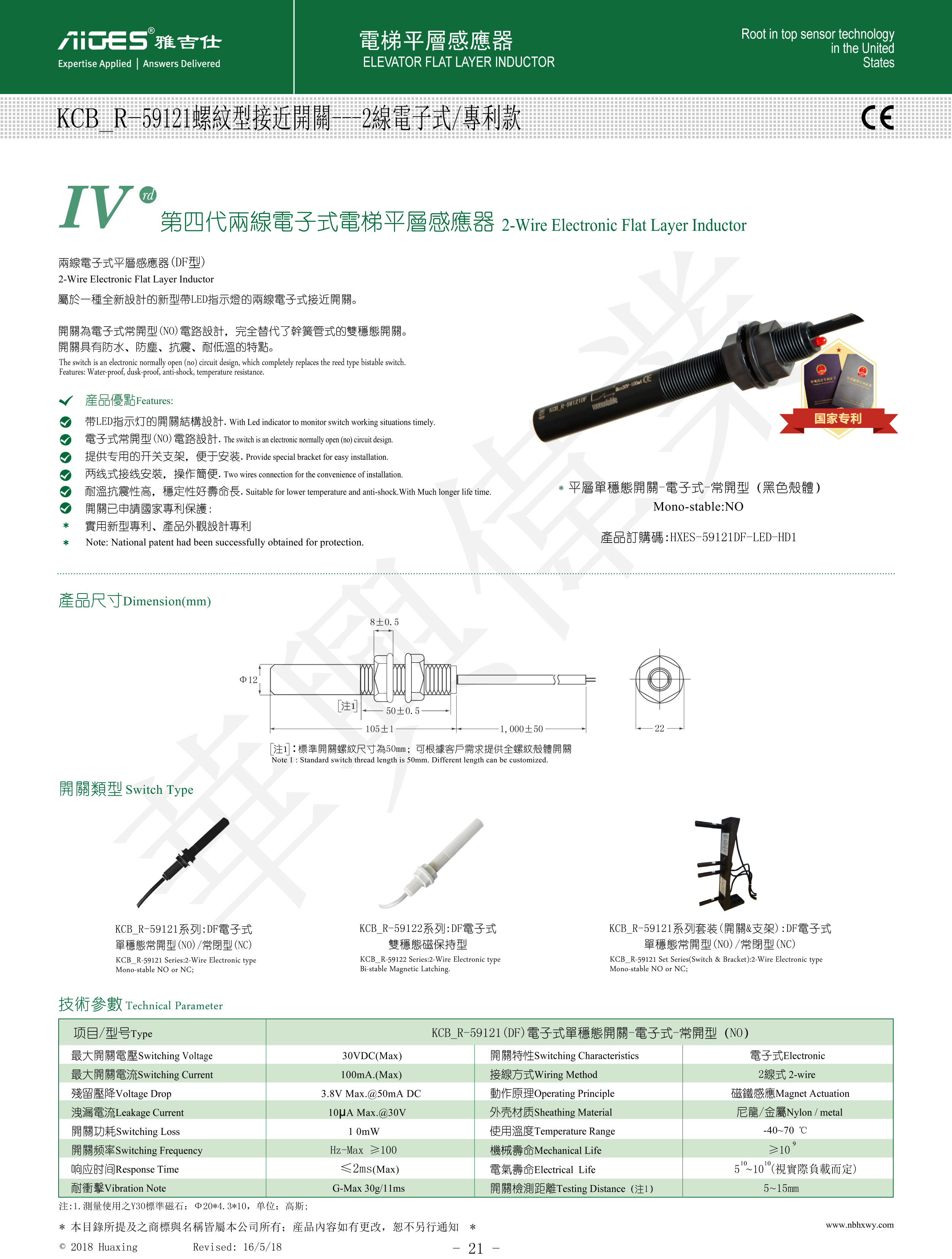 开关为电子式常闭型(NC)电路设计,完全替代了干簧管式单稳态常闭款.
