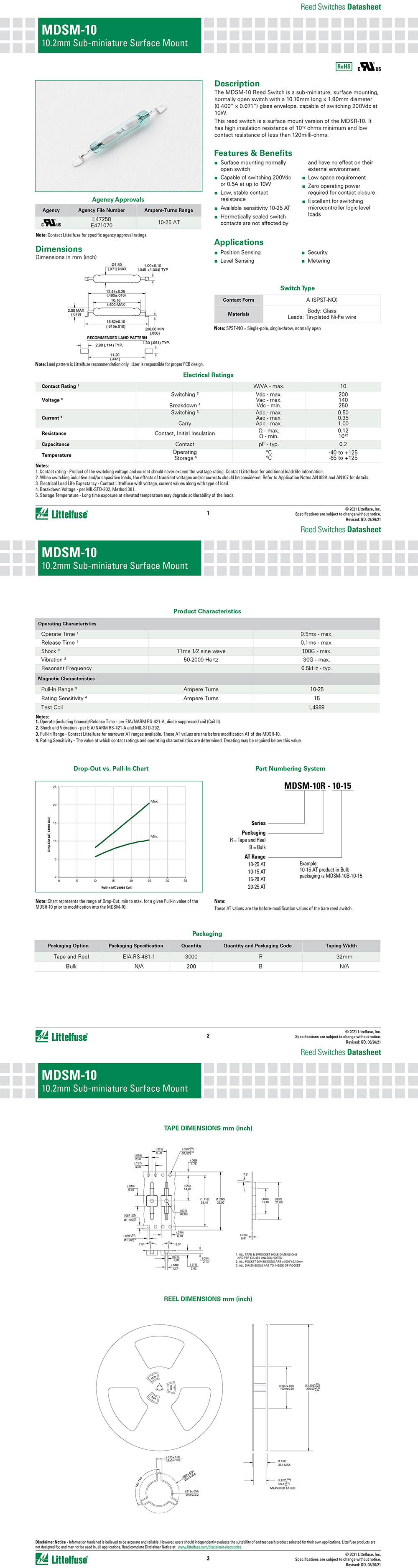 功能与特色:超小型常开开关,最大切换电压与电流分别是200Vdc和0.5A(功率最高10W),可供选择的灵敏度范围为10-25 ,AT 具有至少10¹⁰欧姆的高绝缘电阻以及低于120毫欧姆的接触电阻。