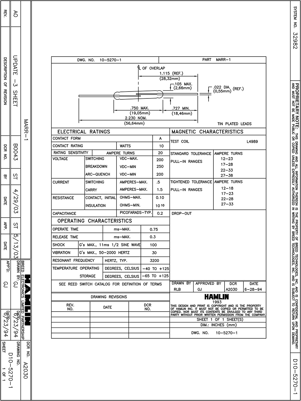 功能与特色:常开开关最大切换电压和电流分别为200Vdc和0.5A(最大功率为10W),可供选择的灵敏度范围为12-38 AT。