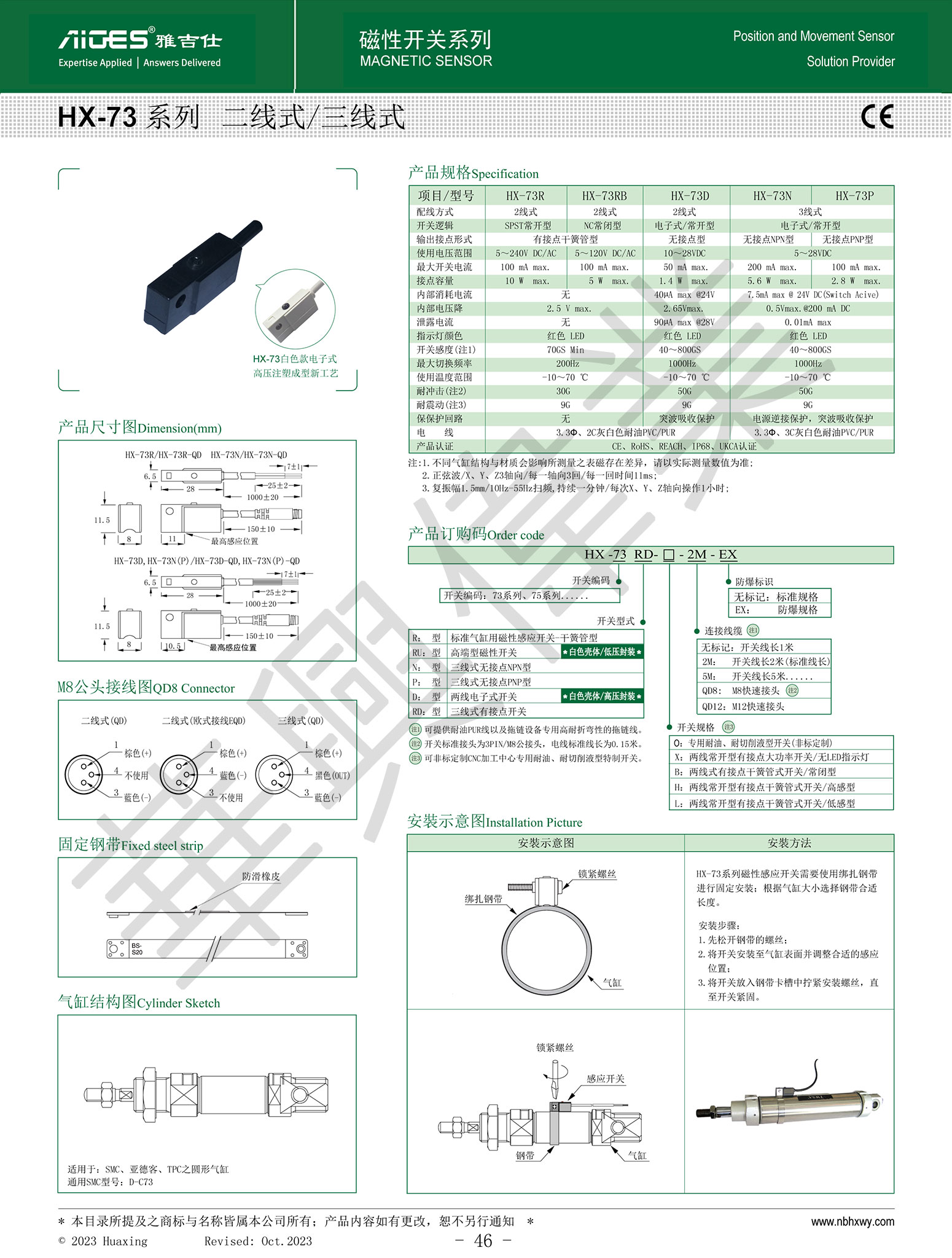 产品类型:HX-73D 两线电子式,HX-73PNP三线电晶体式、HX-73NPN三线电晶体式