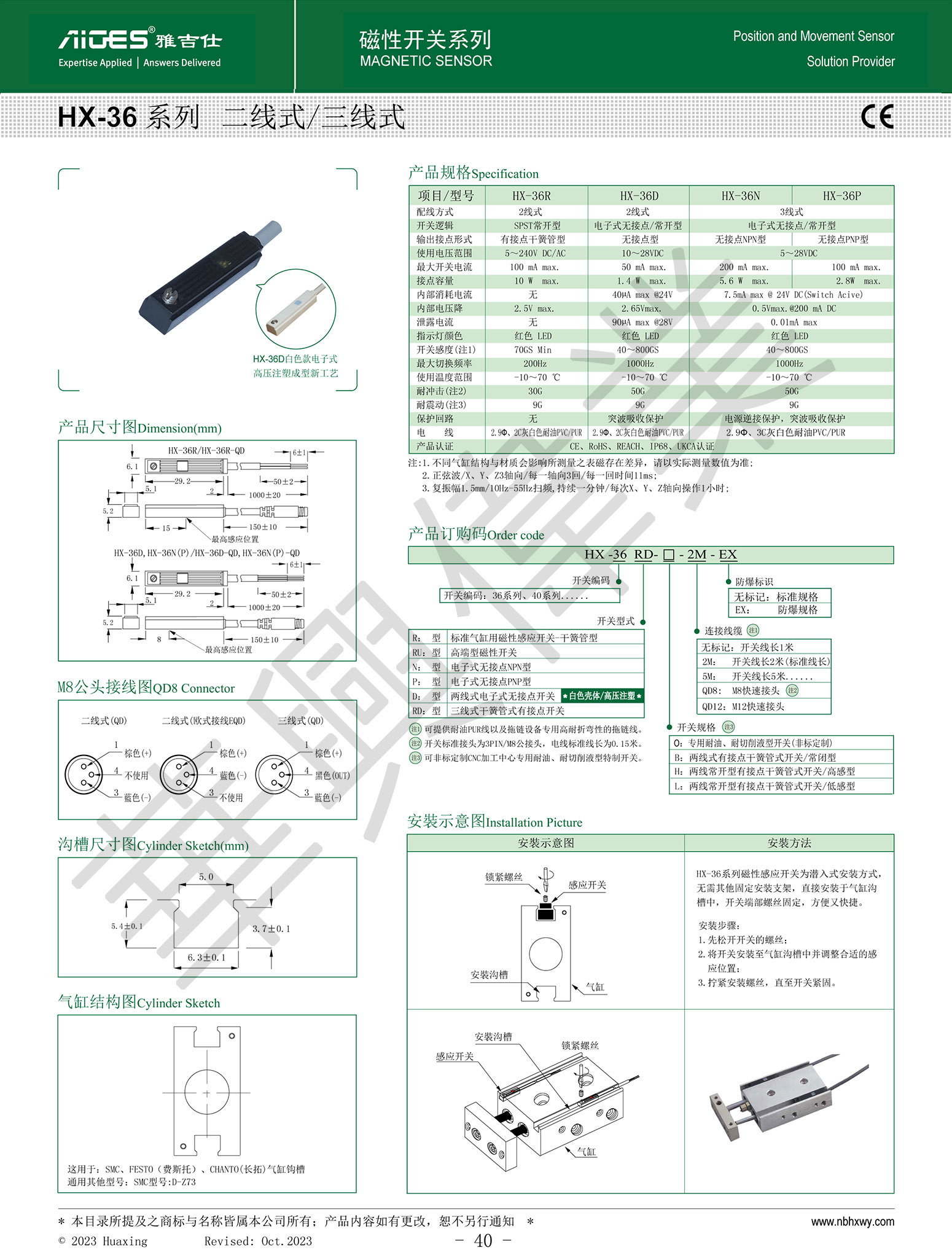 产品类型:HX-36R干簧管式,HX-36D两线电子式,HX-36PNP三线电晶体式、HX-36NPN三线电晶体式