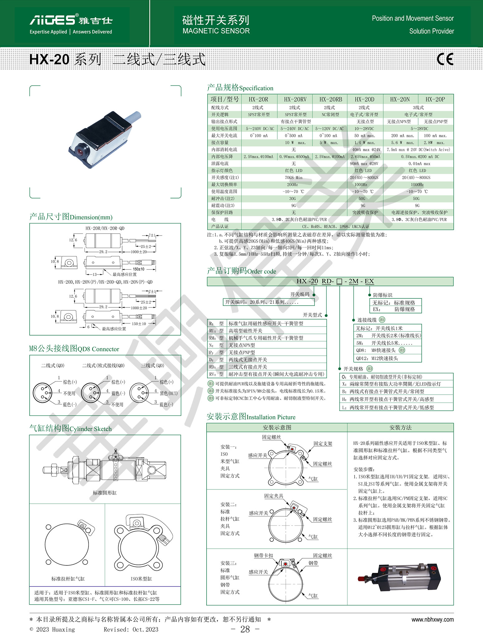 产品名称 : HX-20标准系列磁性感应开关 二线式/三线式