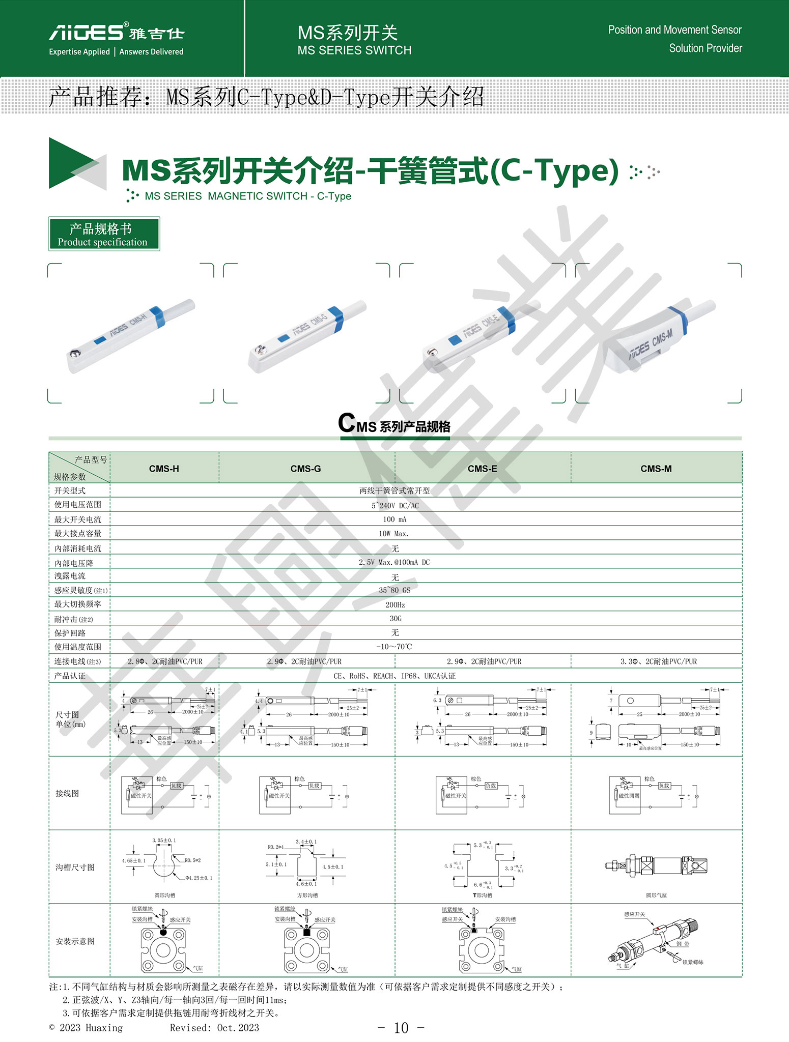 产品类型:CMS-E两线磁簧管式 DMS-E 两线电子式,DMS-EN三线NPN、DMS-EP三线PNP.